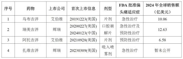 目前,已有4种CGRP小分子受体拮抗剂获FDA批准上市,分别为乌布吉泮、瑞美吉泮、阿托吉泮、扎维吉泮。